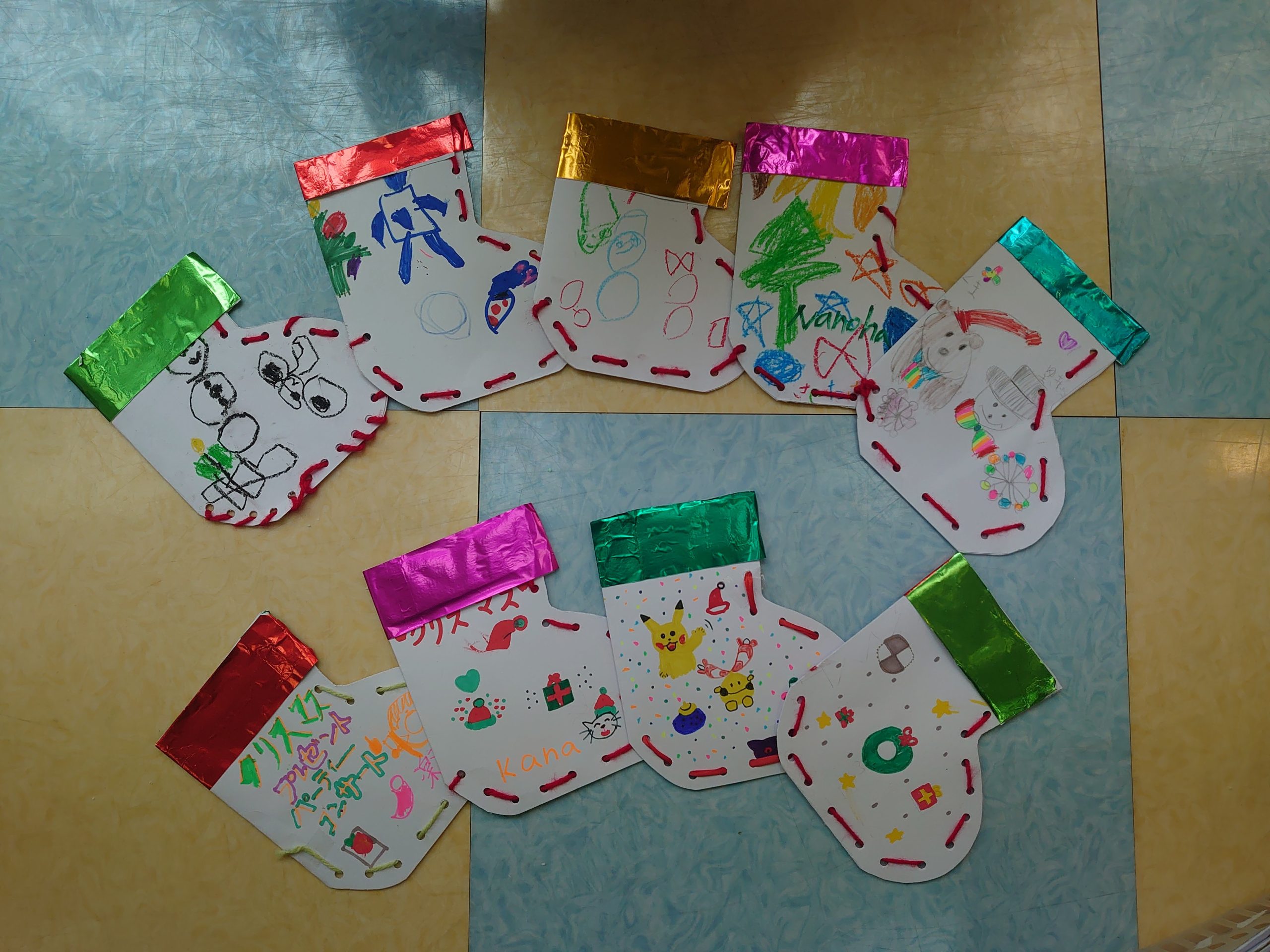 さて、昨年の12月に製作した園児全体の共同製作と窓飾りを本日持ち帰っておりますのでご確認下さい。