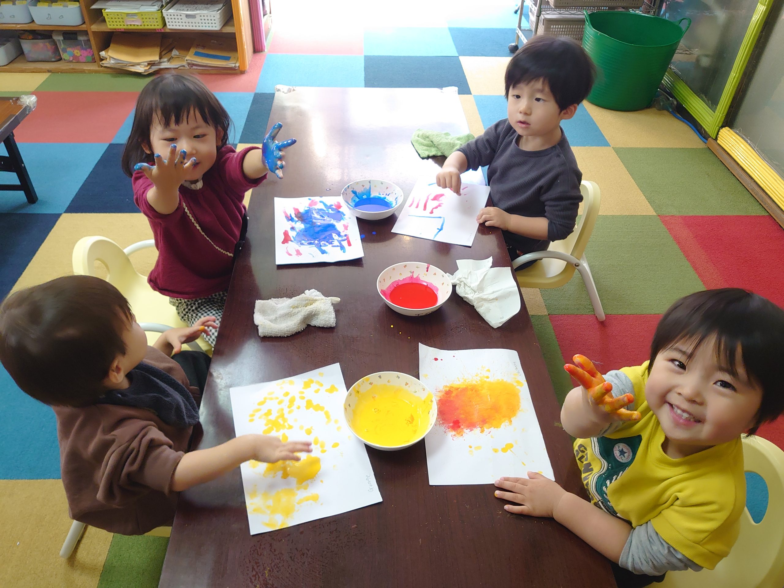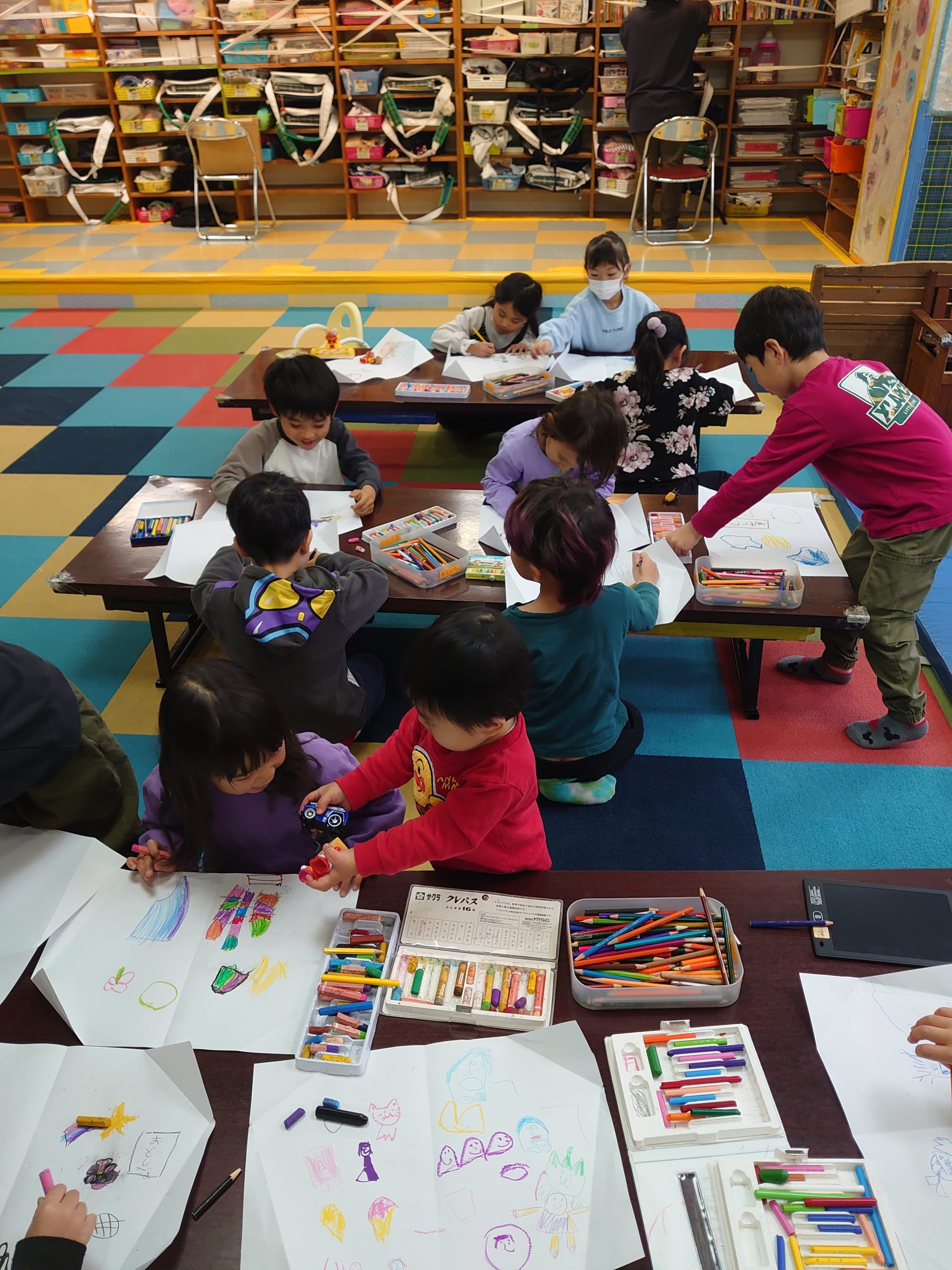 一人ひとり異なったポジションの絵柄でお花紙と糊で製作しました。