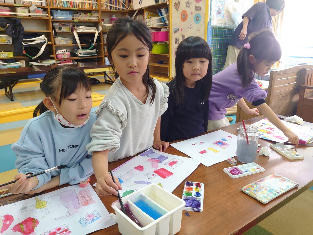 ✦先週は感覚と頭脳を使って糸掛けの工作をしました。ひよこ、うさぎクラスは塗り絵とはさみで切る事を先生と一緒にしました。また後日持ち帰ります。