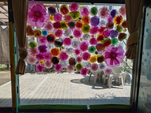 3月に卒園式に向けて作ったお花紙のお花の製作の写真を載せてます。