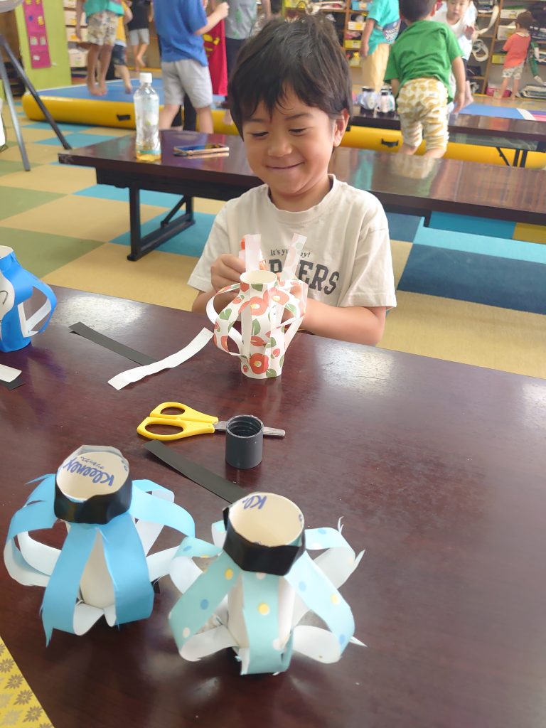 お家でも作ったよ!と報告してくれる子もいました。夏の間に飾ってお祭り気分を味わうのも良いですね。